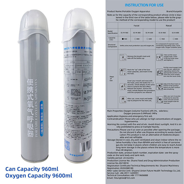 പോർട്ടബിൾ ഓക്സിജൻ കാൻ: ഓക്സിജൻ വിതരണത്തിന്റെ സ്വിച്ച് തുറക്കുക, മർദ്ദം കുറയ്ക്കുന്ന വാൽവ്, ഫ്ലോ റെഗുലേറ്റിംഗ് സ്വിച്ച് എന്നിവയ്ക്ക് ശേഷം ഓക്സിജൻ സിലിണ്ടറിലെ ഉയർന്ന മർദ്ദത്തിലുള്ള ഓക്സിജൻ നന്നായി ട്യൂൺ ചെയ്യപ്പെടും, ആവശ്യമായ ഒഴുക്ക് ഔട്ട്പുട്ട് ആകാം. എയർ ഡക്റ്റ് ബന്ധിപ്പിക്കുക, ഹ്യുമിഡിഫയർ, ഓക്സിജൻ ഇൻഹേലർ, മൂക്കിലെ തടസ്സം എന്നിവ കൈമാറാൻ കഴിയും.